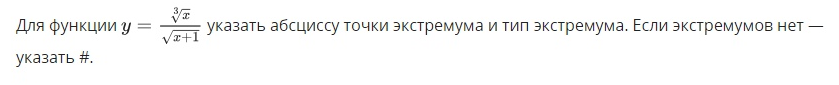 Для функции указать абсциссу точки экстремума и тип экстремума. Если экстремумов нет - указать #.