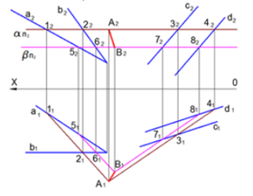 Для построения линии пересечения плоскостей использованы