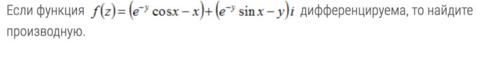Если функция f(z)= (e-y cosx-x)+(e-y sinx-y)i дифференцируема, то найдите производную.