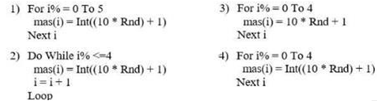 Если сгенерировать случайным образом 5 целых значений для массива объявленного как Dim mas(5) As Integer, получим запись: