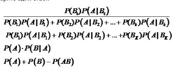 - P(B) — это полная вероятность события B, которая может быть рассчитана как сумма вероятностей B при всех возможных A.