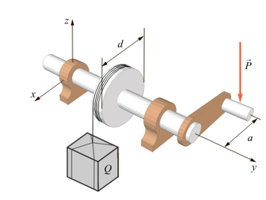 Груз весом Q = 360 Н удерживается в положении равновесия силой Р = 120 Н, силы Q и Р вертикальны. Рукоять ворота расположена в горизонтальной плоскости.