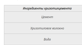 Чтобы установить соответствие между ингредиентами хризотилцемента и их количеством в составе, давайте рассмотрим основные компоненты этого материала.