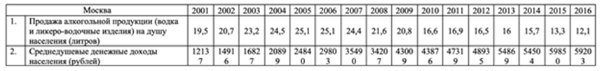Имеются данные по продаже алкогольной продукции (водка и ликеро-водочные изделия) на душу населения X и по среднедушевым денежным доходам населения Y (см. таблицу ниже). Определите коэффициент корреляции Rxy между указанными ниже показателями.