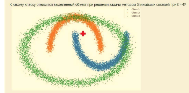 К какому классу относится выделенный объект при решении задачи методом ближайших соседей при К=4?