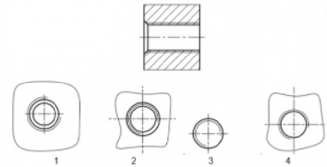 - Сравните элементы и формы на виде слева с возможными изображениями фронтального разреза.