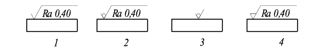 Какой из приведённых знаков обозначения шероховатости поверхности указывает, что поверхность должна быть обработана со снятием слоя материала?