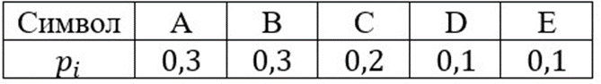 Код Хаффмана для источника X, вероятности появления символов которого представлены в таблице, имеет вид … ![]()