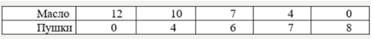 Королевство А производит два знаменитых продукта: «масло» (образ мирной продукции) и «пушки» (образ военной продукции) и имеет следующую границу производственных возможностей (ГПВ) (см. рисунок ниже):