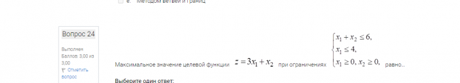 Максимальное значение целевой функции z=3x1+x2 при ограничениях