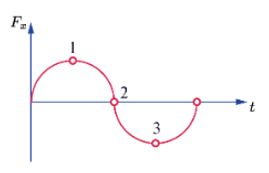 - Сила, действующая на материальную точку, может изменяться со временем. В данном случае проекция силы на ось ОХ меняется в зависимости от времени.