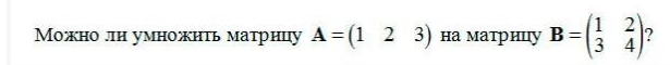 Можно ли умножить матрицу А = (1 2 3) на матрицу В = (1/3 2/4)?