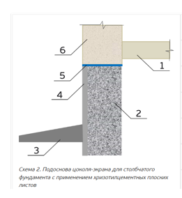 На рисунке 2 дана схема цоколя-экрана для столбчатого фундамента с применением хризотилцементных плоских листов.