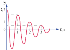 На рисунке изображен график затухающих колебаний, где х - колеблющаяся величина, описываемая уравнением x(t) = A0e-bt sin(wt + ф). Логарифмический декремент затухания равен...