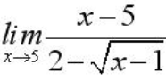 lim (x − 5) / (2 − √(x − 1)) * (2 + √(x - 1)) / (2 + √(x - 1)).