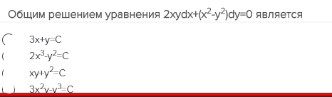 Общим решением уравнения 2xydx+(x2-y2)dy=0 является