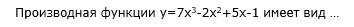 Производная функции y=7x3-2x2+5x-1 имеет вид …