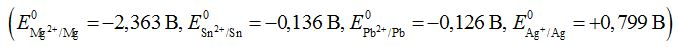 Теперь давайте рассмотрим предложенные металлы и их стандартные электродные потенциалы: