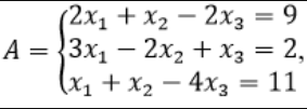 Другие предметы Колледж Определители и системы линейных уравнений система уравнений определитель математика колледж решение уравнений линейная алгебра A = {2x₁ + x₂ − 2x₃ = 9 3x₁ − 2x₂ + x₃ = 2 x₁ + x₂ − 4x₃ = 11 определитель |A₃| -32 -33 -34
