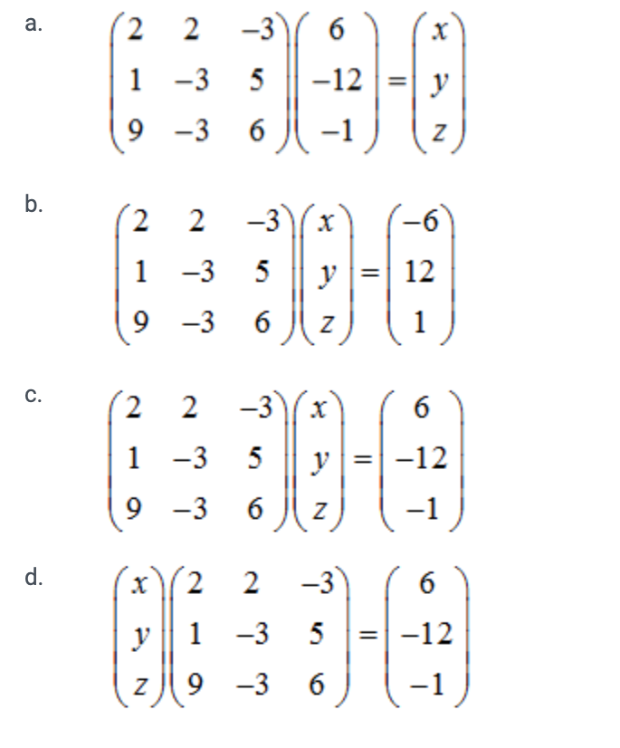Для того чтобы записать данную систему линейных уравнений в матричной форме, нам нужно сначала привести уравнения к стандартному виду, где все свободные члены перенесены в правую часть уравнения.