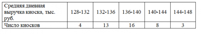 Наибольшее количество киосков (12) находится в интервале 136–140. Таким образом, модальный интервал — это 136–140.