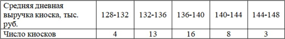 Распределение количества киосков по средней дневной выручки представлено в таблице: