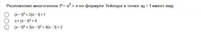 Разложение многочлена Р= х3 + х по формуле Тейлора в точке хо =1 имеет вид: