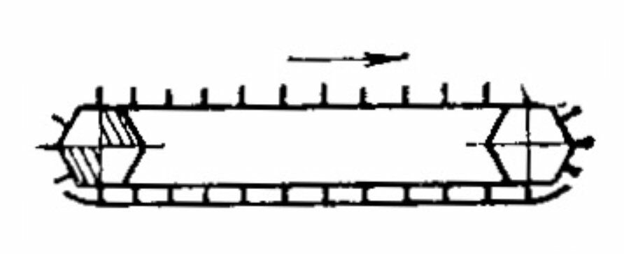 - Ковшовой конвейер: имеет ковши, которые поднимают и переносят сыпучие или мелкие грузы вертикально или наклонно.