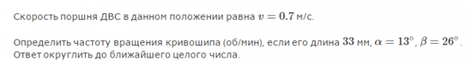 Определить частоту вращения кривошипа (об/мин), если его длина 33 мм, а = 13° B= 26°.