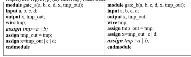 Совпадают или нет результаты синтеза для двух приведенных текстовых описаний. Нарисуйте структуру(ы) синтезируемых схем.