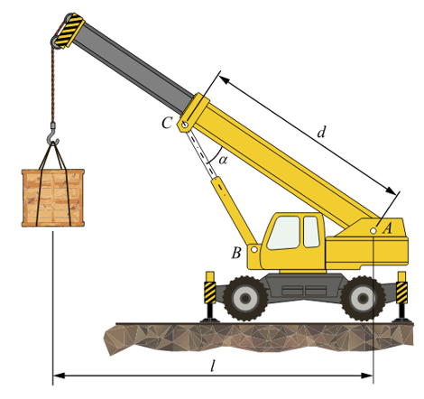 Другие предметы Колледж Статика теоретическая механика автокран телескопическая стрела гидравлический цилиндр равновесие расчет силы механика грузов угол наклона вес груза физика колледж