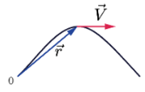 Рассмотрим радиус-вектор r в момент наивысшего подъема. Он направлен от точки O (начала движения) к точке, где находится тело. Этот радиус-вектор будет также горизонтальным, но направленным вверх.