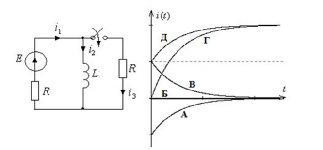 Указать кривую переходного тока i3(t) после коммутации. ![]()