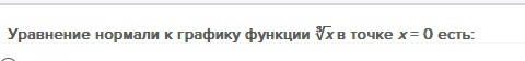 Уравнение нормали к графику функции 5х в точке х= 0 есть: