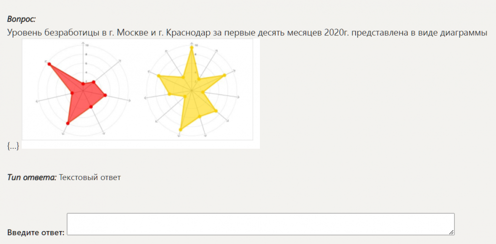 Уровень безработицы в г. Москве и г. Краснодар за первые десять месяцев 2020г. представлена в виде диаграммы {...}
