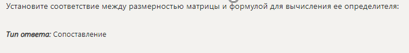 Установите соответствие между размерностью матрицы и формулой для вычисления ее определителя: