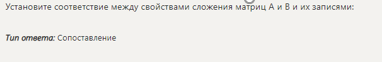 Установите соответствие между свойствами сложения матриц А и В и их записями: