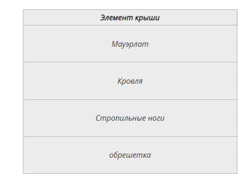 В таблице перечислены элементы крыши. Переместите в соответствующие ячейки таблицы их определения.