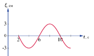 В упругой среде в положительном направлении оси 0х распространяется плоская волна. На рисунке приведен график зависимости смещения частицы среды от времени t в произвольной точке оси 0x.