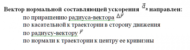 Направление нормальной составляющей ускорения: Рассмотрим основные моменты: