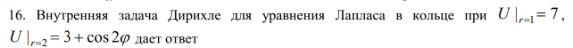 Внутренняя задача Дирихле для уравнения Лапласа в кольце при дает ответ