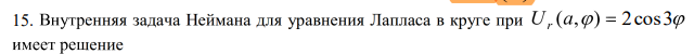 Другие предметы Колледж Уравнения математической физики внутренняя задача Неймана уравнение Лапласа круг решение математика колледж