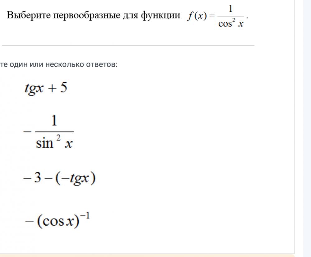 Выберите первообразные для функции f (x) = 1/cos2x