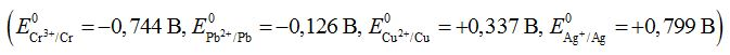 Давайте рассмотрим предложенные металлы и их стандартные электрохимические потенциалы: