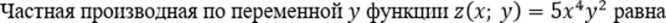 Частная производная по переменной y функции z(x; y) = 5x^4*y^2 равна