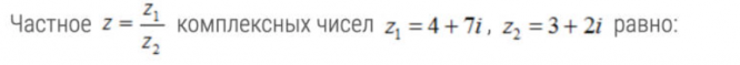Частное z = z1/z2 комплексных чисел z1 = 4 + 7i, z2= 3 + 2i равно: