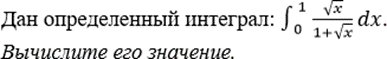 ∫[0, 1] (√x + x) dx = [(2/3)x^(3/2) + (1/2)x^2] от 0 до 1.