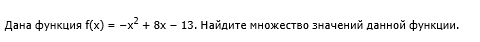 Дана функция f(x) = −x2 + 8x − 13. Найдите множество значений данной функции.