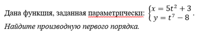 Дана функция, заданная параметрически: Найдите производную первого порядка.