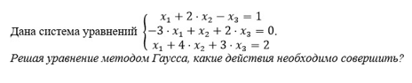 Метод Гаусса, или метод исключения Гаусса, применяется для решения систем линейных уравнений. Он позволяет преобразовать систему уравнений в ступенчатую или треугольную форму, чтобы затем найти решение. Давайте рассмотрим шаги решения данной системы уравнений:
